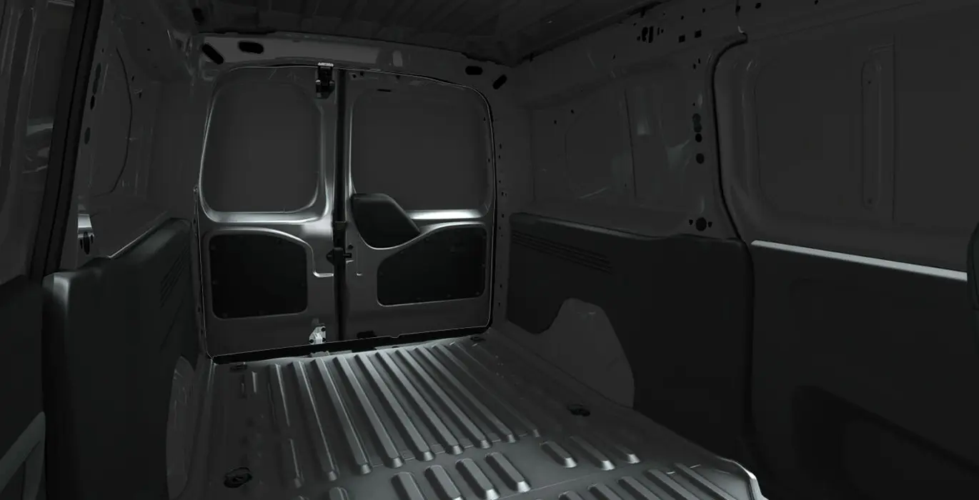 - Puertas traseras dobles metálicas disimétricas 1/3 (derecha) - 2/3 (izquierda), con apertura de 180° y cerradura